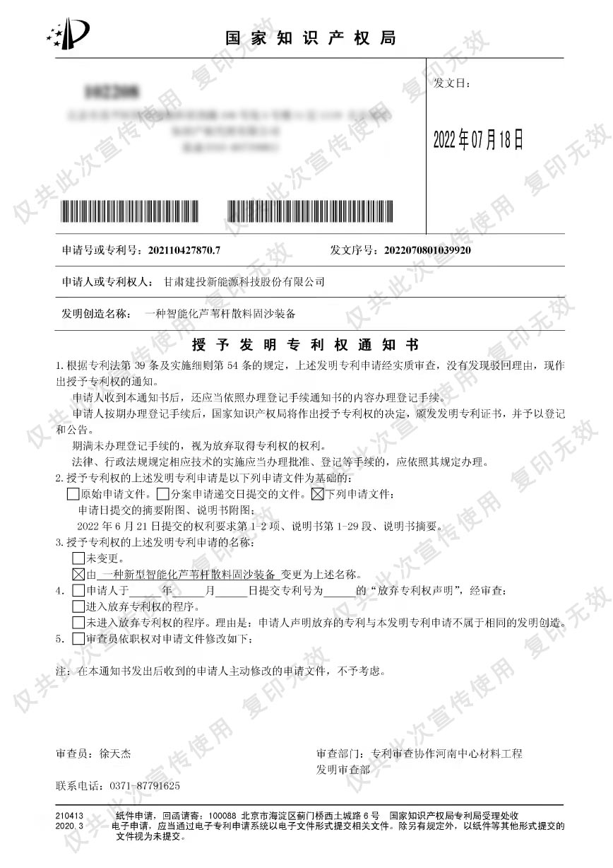 熱烈祝賀甘肅建投新能源公司榮獲4項專利
